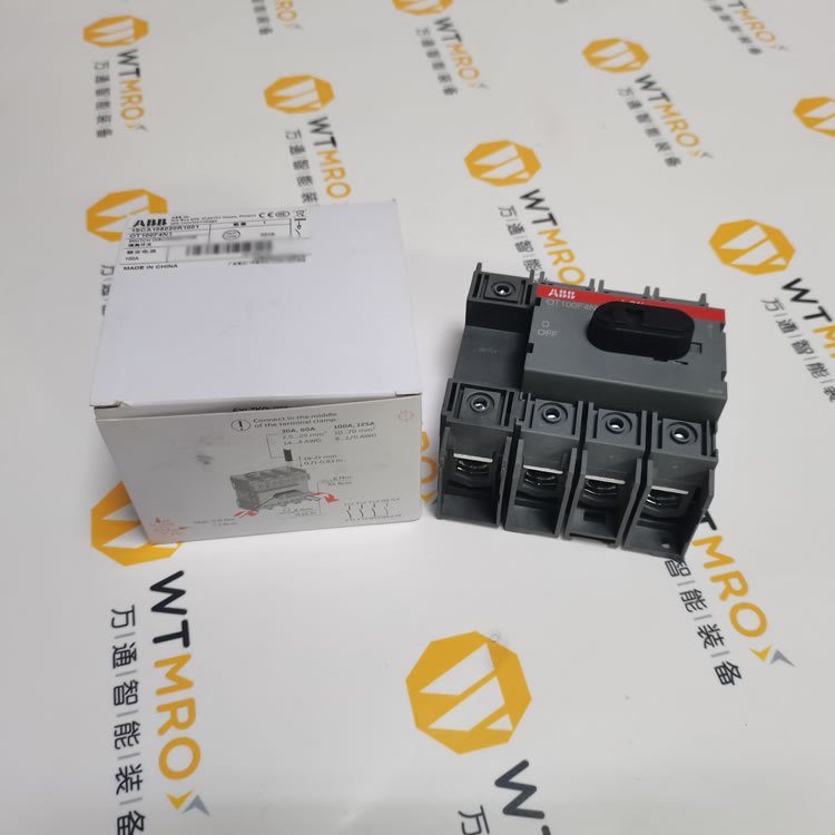 瑞士ABB OT100F4N1為4極前置式隔離開關(guān),底座可直接卡裝在TS35 DIN導(dǎo)軌上,不帶手柄和軸,需另行選配。前保護(hù)夾子端子,免熔斷設(shè)計(jì),提供可靠的手動(dòng)隔離功能,結(jié)構(gòu)緊湊,安裝維護(hù)便捷。