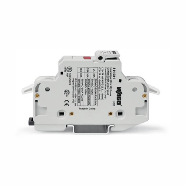 德國WAGO萬可811-311保險絲端子塊,是一款2芯保險絲座。它設計精巧,具備1極帶熔斷保險絲指示功能,能及時反饋保險絲狀態。適用于圓柱形保險絲,有明確的規格適配范圍。采用籠式夾具,連接可靠。整體為淺灰色,外觀簡潔。保險絲座在負載下不得打開的注意事項,保障了使用安全,為電氣系統提供穩定的過載保護。