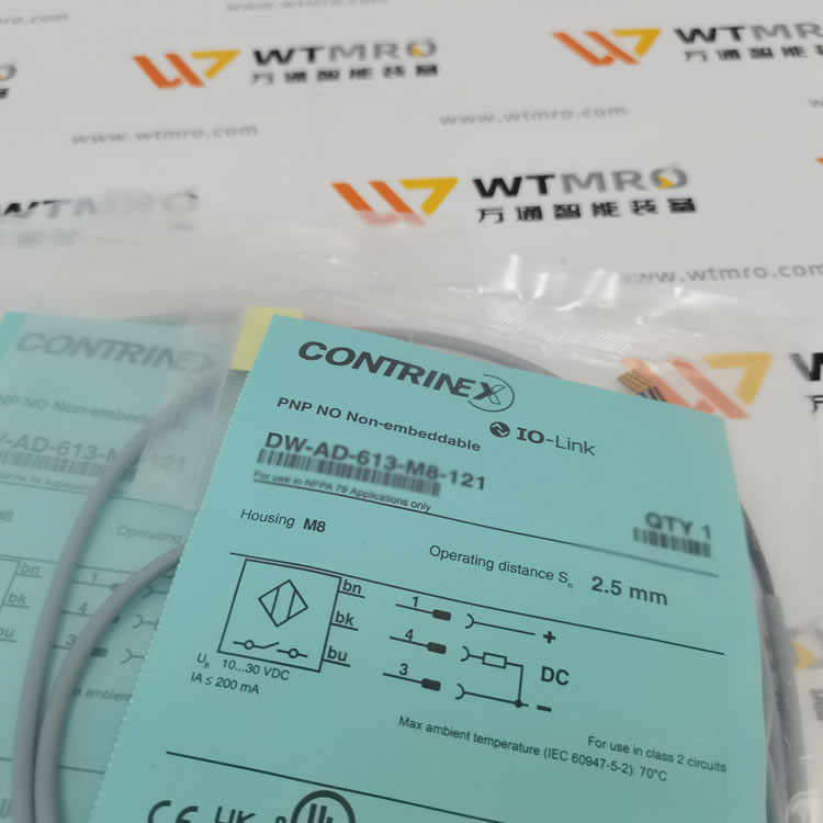 Contrinex DW-AD-613-M8-121 是一款超小型一體化電感式接近傳感器,為市場上 M8 規格的緊湊型標桿產品。其檢測距離達 2.5mm,檢測偏差≤2%,搭配出眾的溫度補償性能,可在寬溫環境下穩定輸出精準信號。